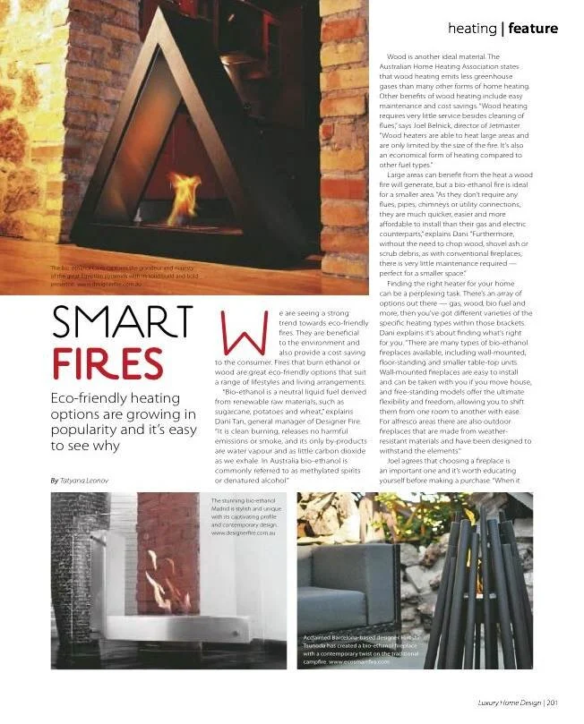 We are seeing a strong trend towards eco-friendly fires. They are beneficial to the environment and also provide a cost saving fires to the consumer. Fires that burn ethanol or wood are great eco-friendly options that suit a range of lifestyles and living arrangements.